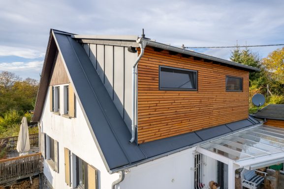 Ein Dach schützt nicht nur vor Wind und Wetter – es trägt maßgeblich zu Wohnkomfort und Energieeffizienz Ihres Hauses bei. Ob klassische Eindeckung, moderne Flachdachlösung oder individuelle Sonderformen – wir begleiten Sie von der Bestandsaufnahme über die Planung bis zur fachgerechten Umsetzung. Jedes Dach wird dabei individuell auf Ihre Anforderungen abgestimmt und nach höchsten Qualitätsstandards saniert. Bei unseren Dachumdeckungen legen wir Wert auf präzises Handwerk, hochwertige Materialien und sorgfältige Planung. Besonders bei der Sanierung bestehender Gebäude wird so aus einem alten Dach ein modernes, langlebiges und energieeffizientes Bauteil, das Heizkosten reduziert und den Wohnkomfort deutlich steigert.